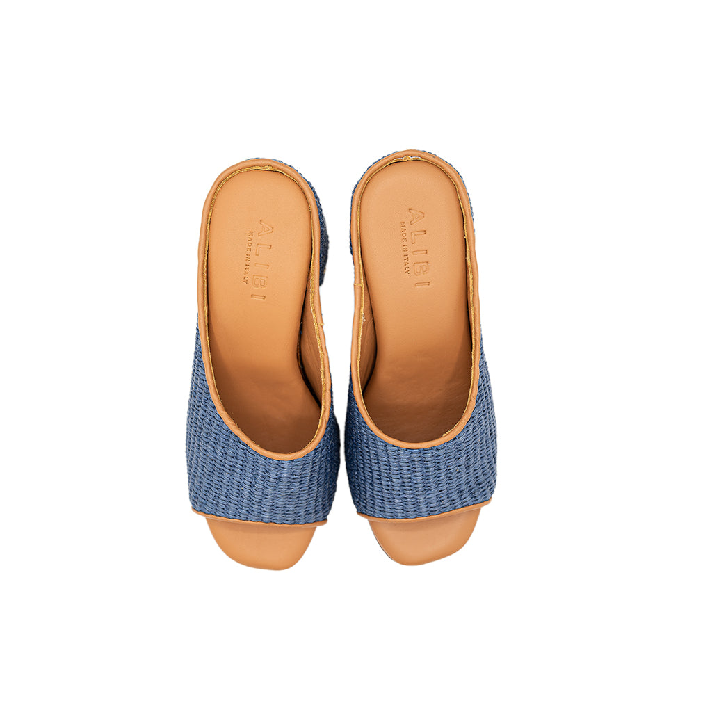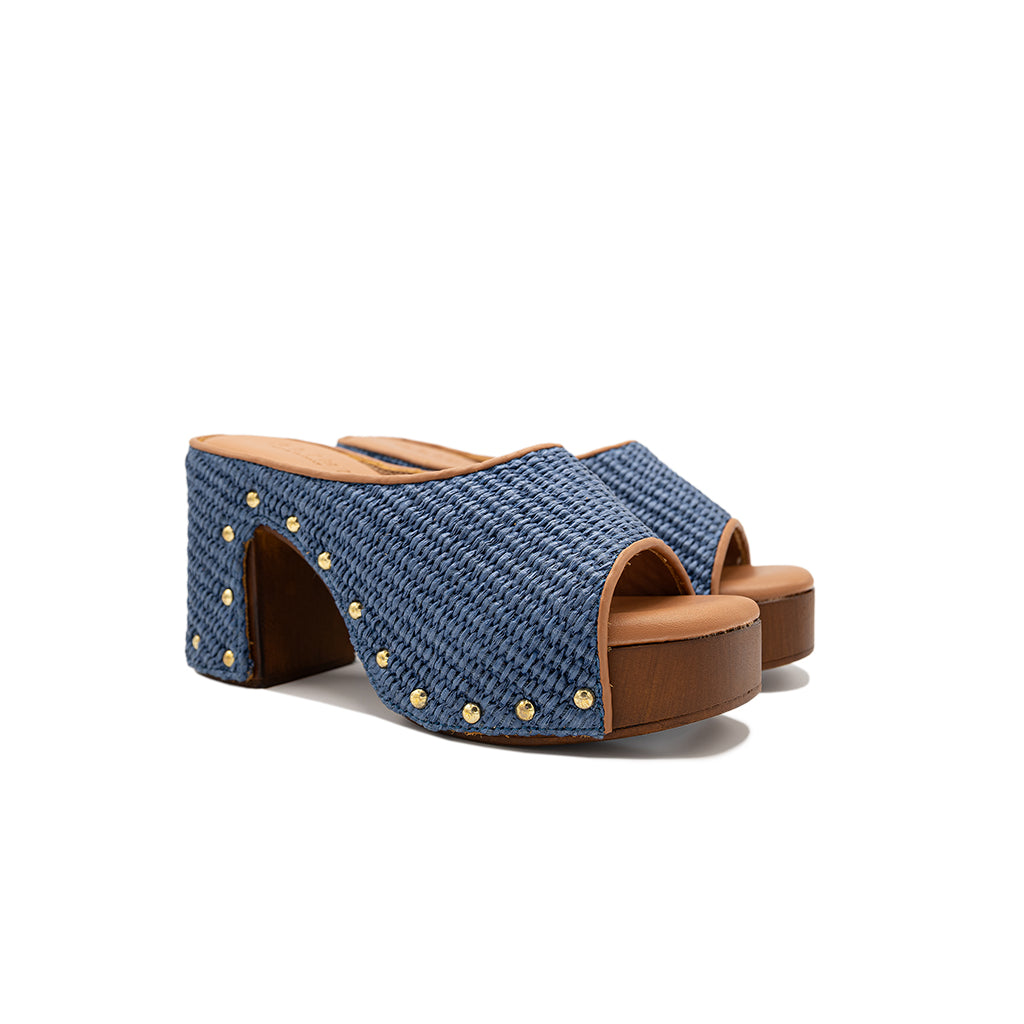 Linee decise e dettagli luminosi fanno di Amelia lo zoccolo perfetto per chi ama distinguersi con eleganza. La tomaia in rafia naturale, punteggiata da micro borchie dorate, cattura la luce ad ogni passo ed è rifinita con un bordino in pelle che ne valorizza il design.
