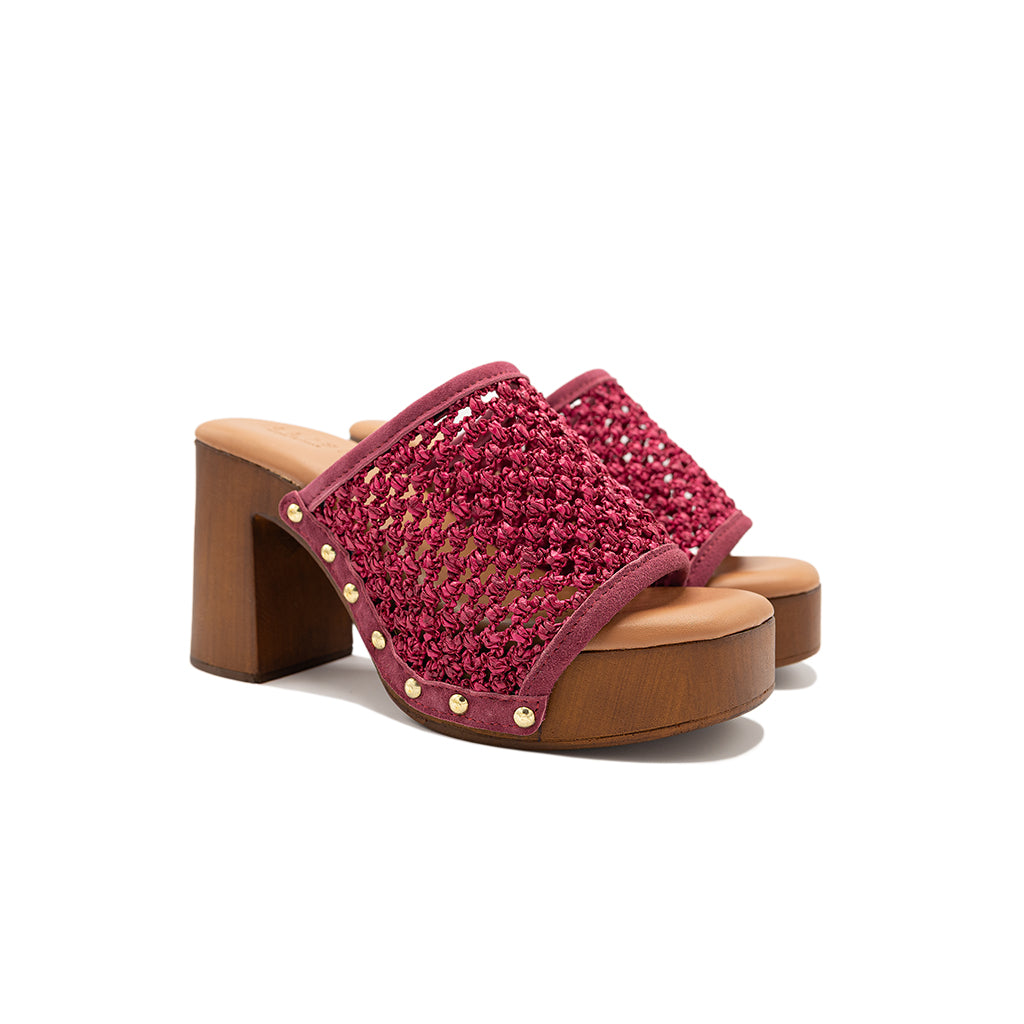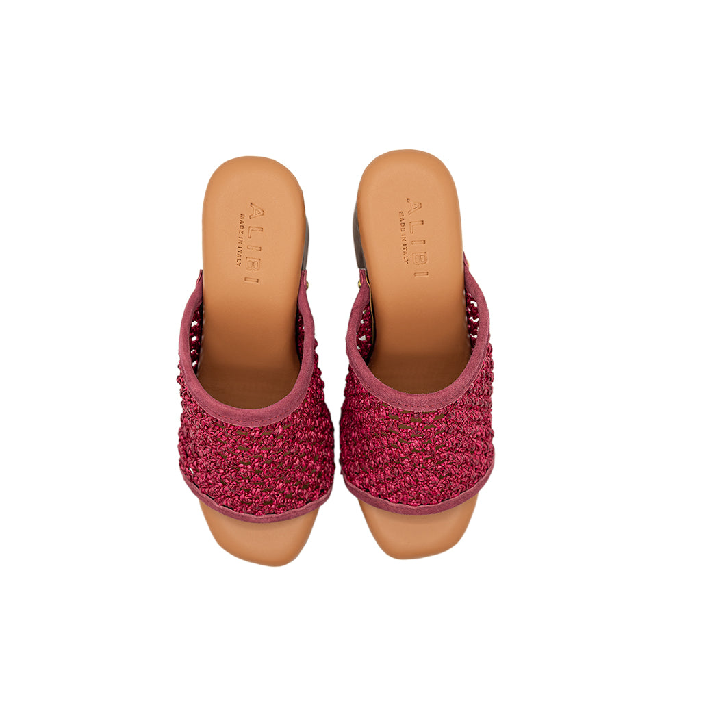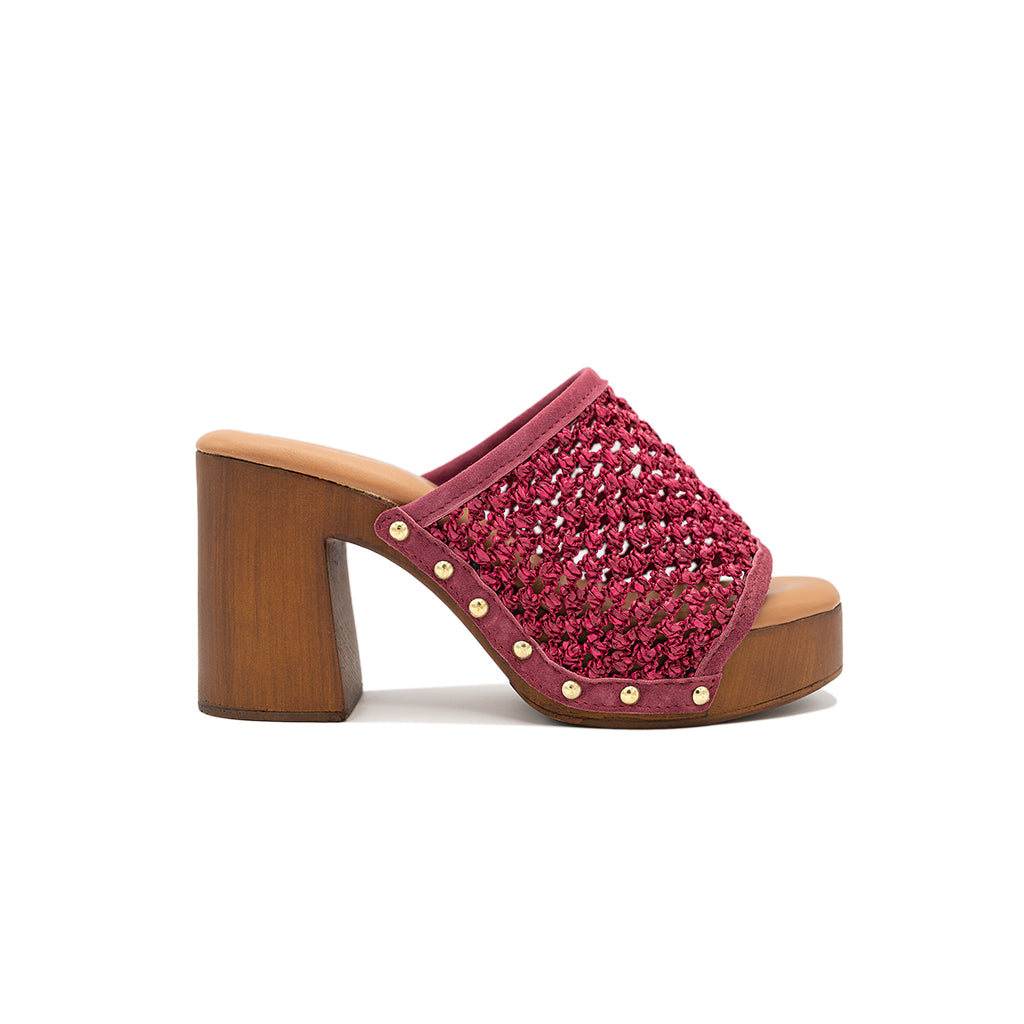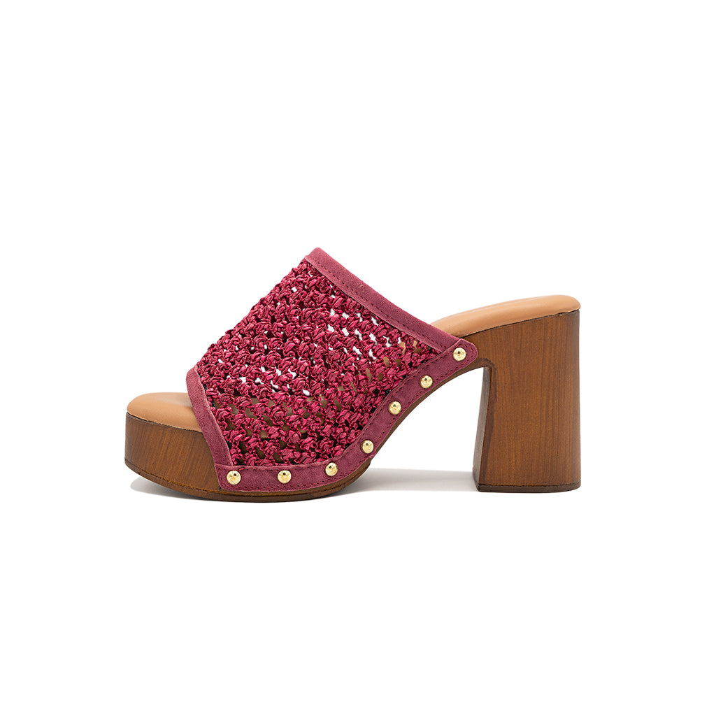 Con una fascia in rafia forata contornata da un bordino in pelle scamosciata e fissata con bocchette dorate, Rita, è il nuovo zoccolo della collezione SS26 per chi ama distinguersi con eleganza.