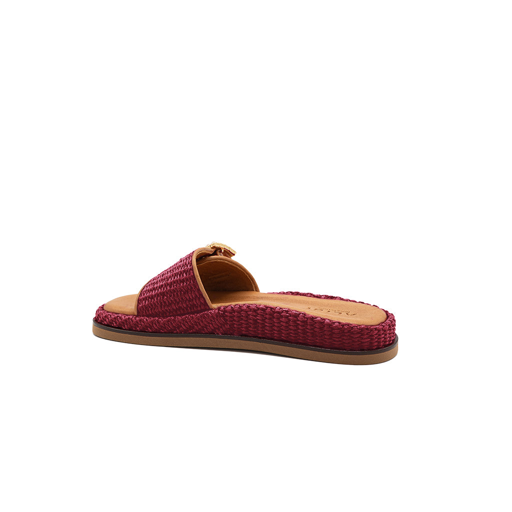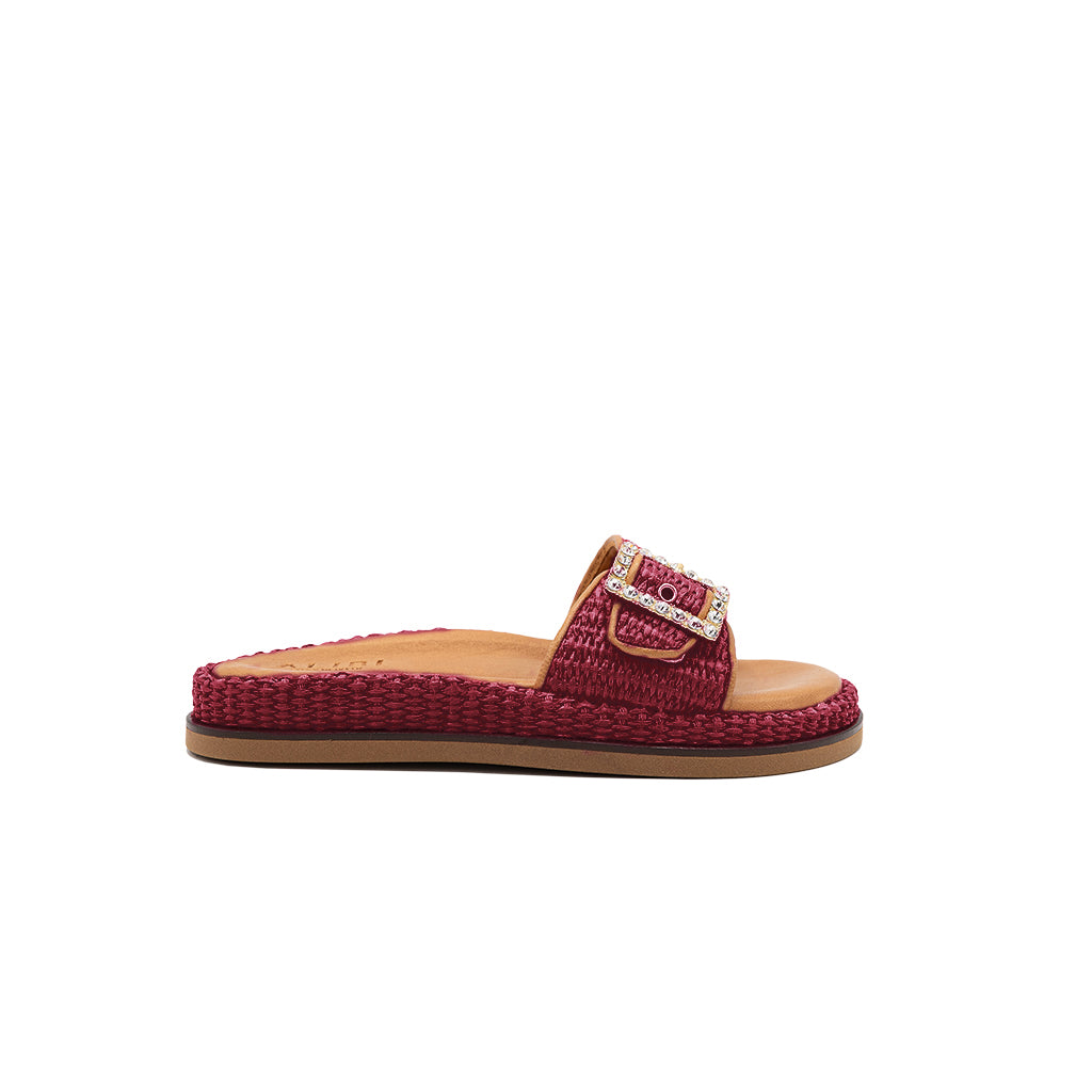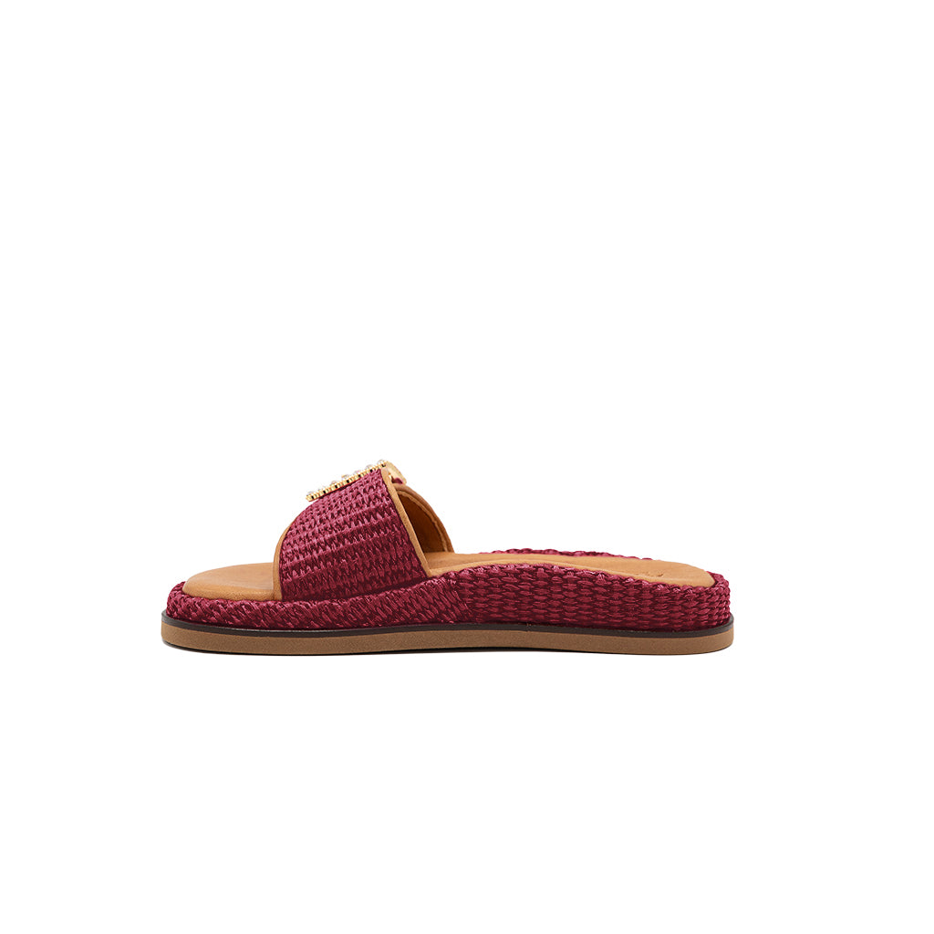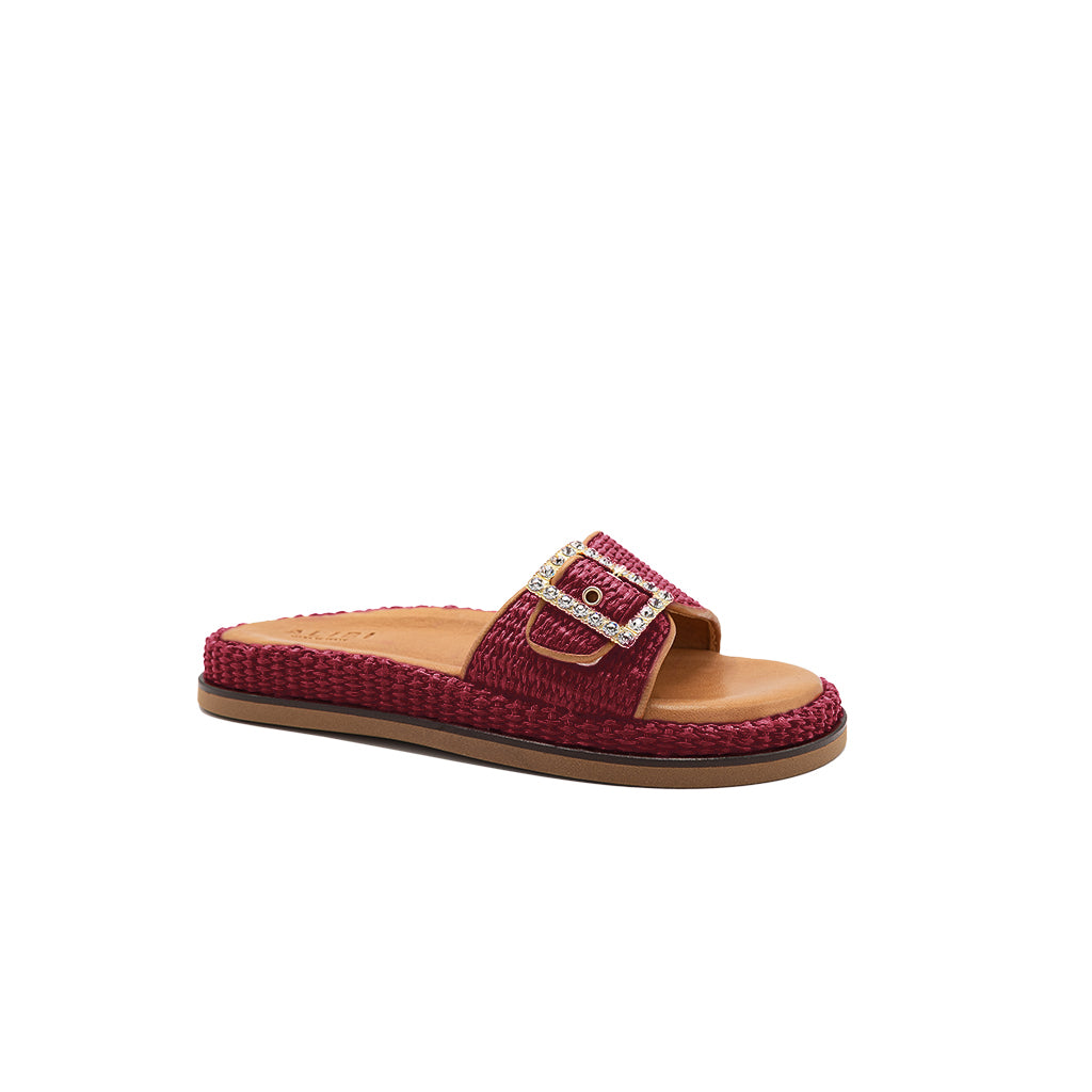 Un mix perfetto di comfort e stile: Nina è il sandalo che unisce leggerezza e ricercatezza in un design essenziale. La fascia in rafia, decorata con una fibbia di strass e rifinita da bordi in pelle, aggiunge un tocco raffinato e luminoso.